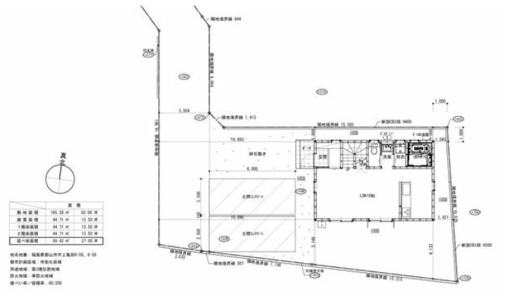 | 建物面積/坪数 | 89.42㎡ / 27.04坪 | 土地面積/坪数 | 243.92㎡ / 73.78坪 |